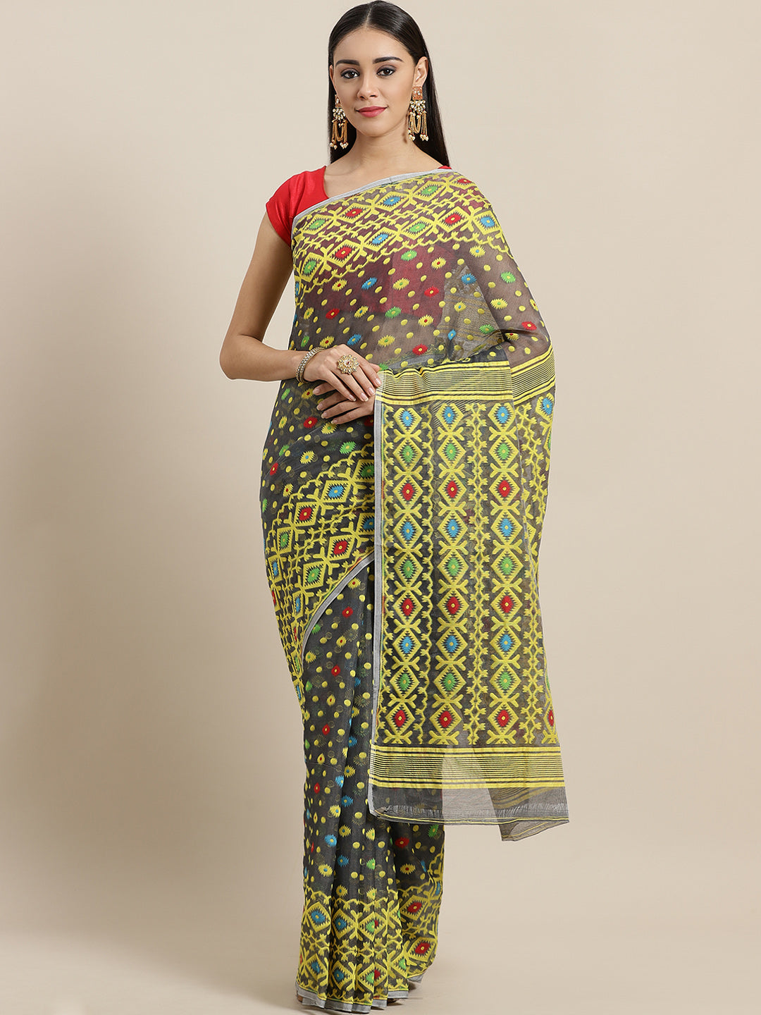 GREEN & GOLDEN HANDLOOM Hand Woven tant jamdani Saree. design from Laa Calcutta. This Saree In with Blouse peice. The saree comes with an unstitched blouse piece