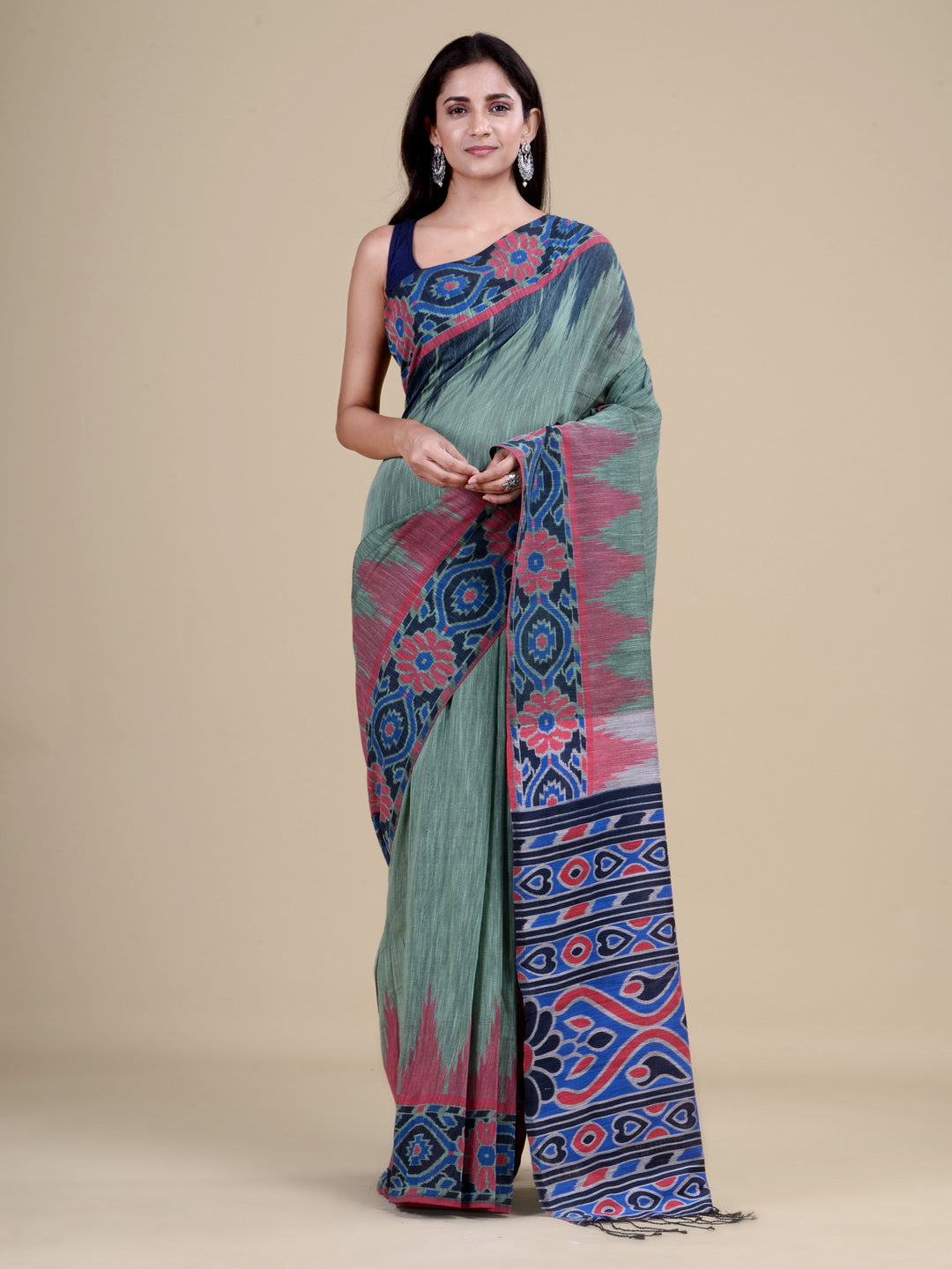 | Green & Multi Pure Cotton Handloom Saree |