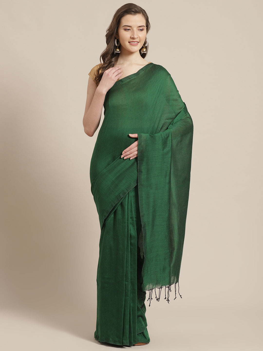| Laa Calcutta Green pure cotton solid Handloom saree |