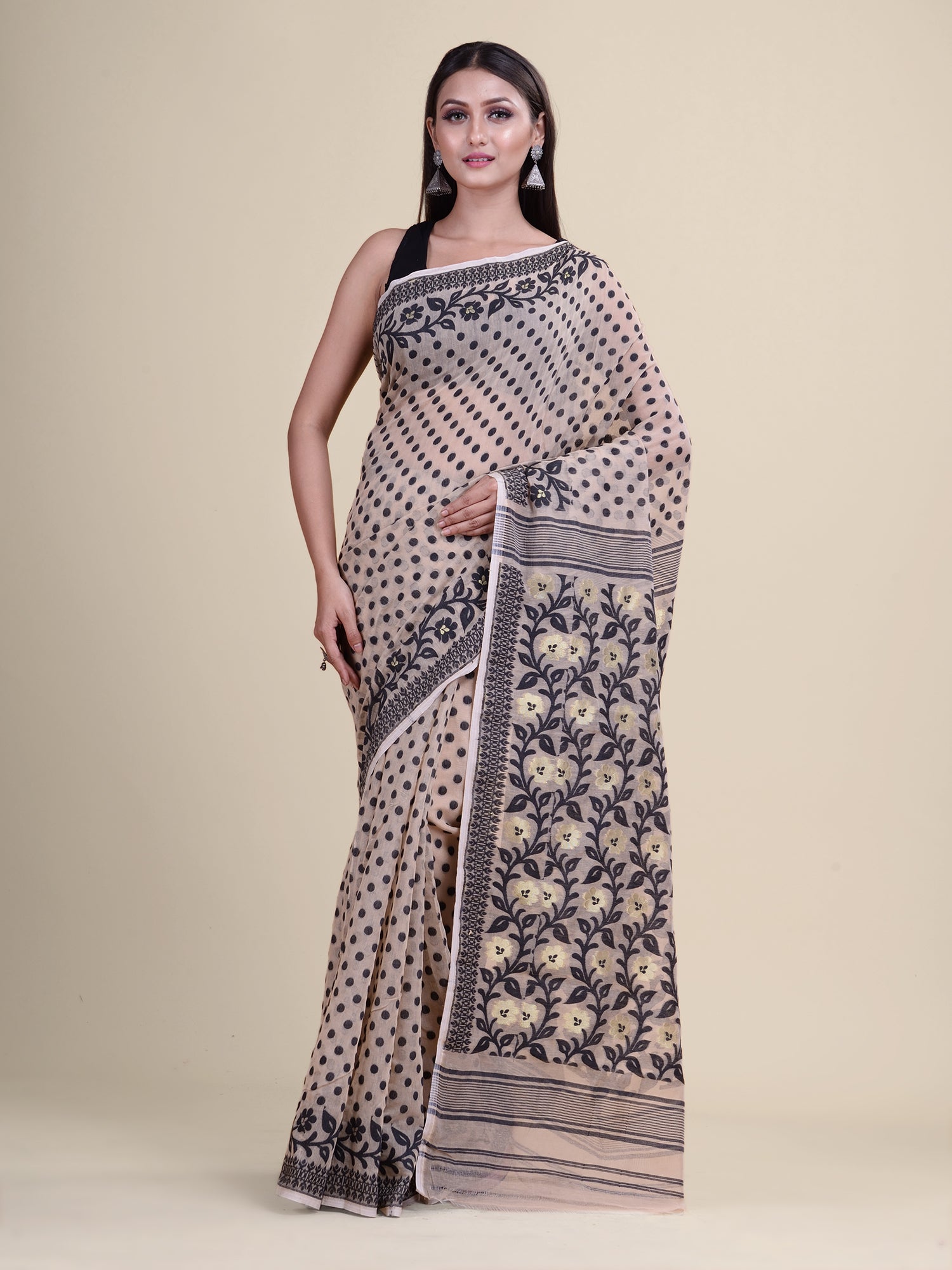 | Off White & Black Cotton Jamdani Saree |
