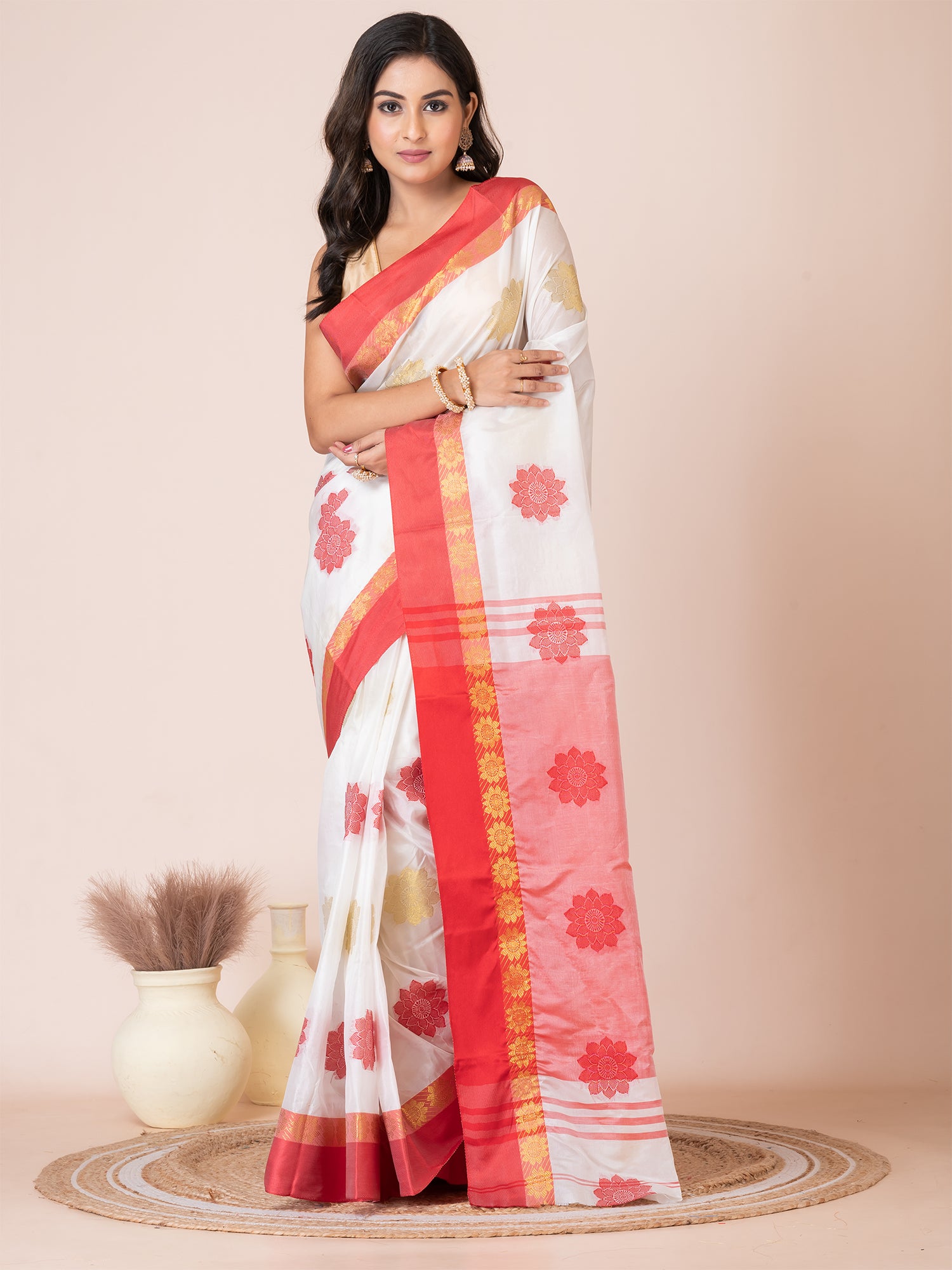 This saree comes with a running blouse piece. The model is wearing a blouse for modelling purposes only. Disclaimer: The colour of the product might slightly vary as the