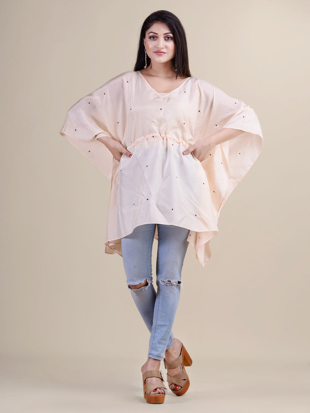 | V-Neck Extended Sleeves Thread Work Georgette Kaftan Kurti |