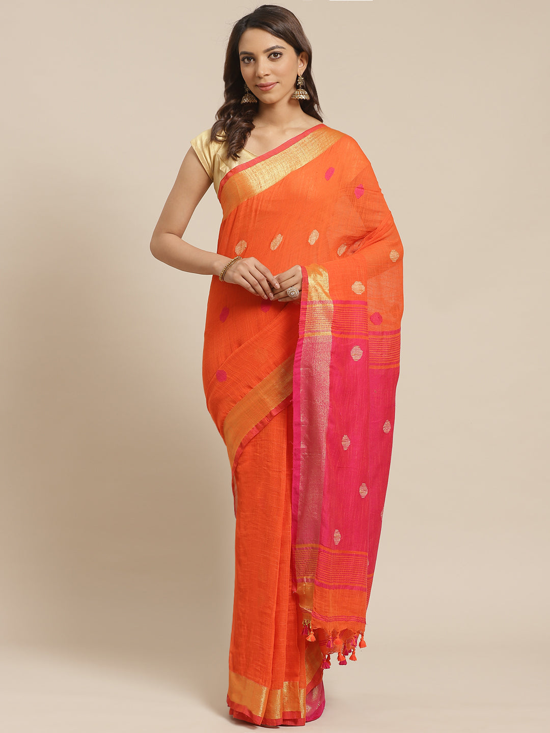 | Orange & Pink handloom saree |