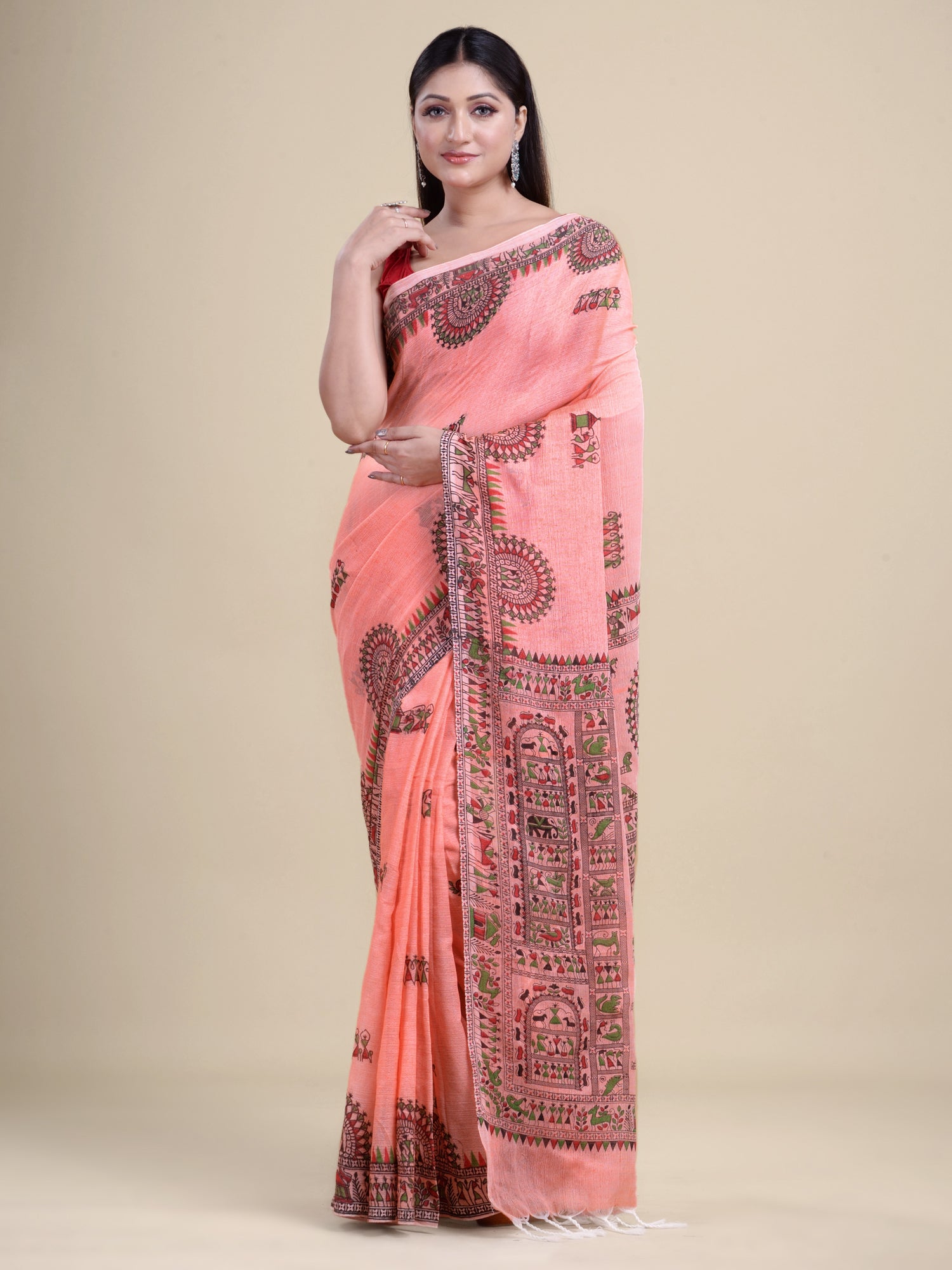 | Peach & Multi Handloom saree |