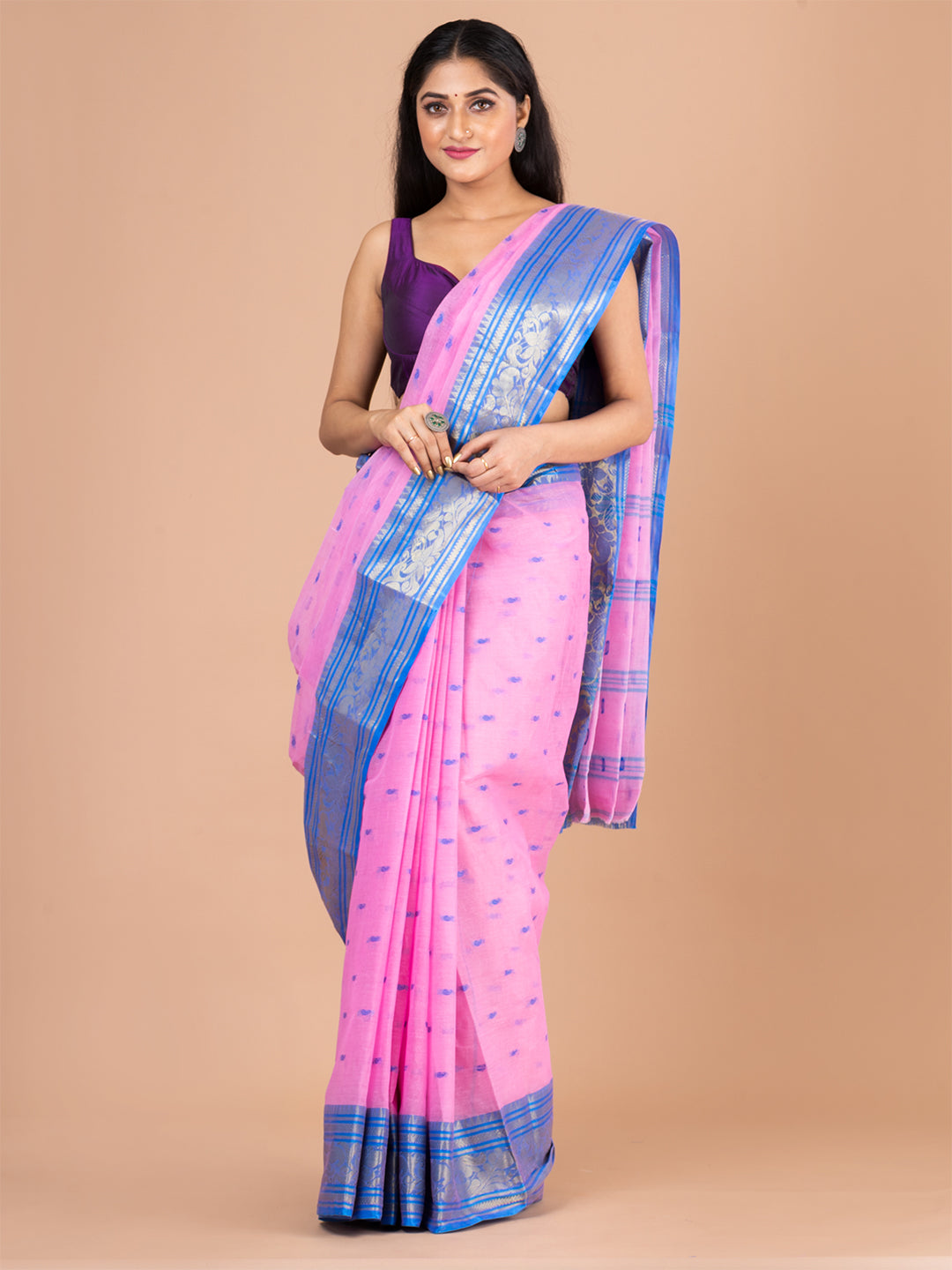 | Pink & Blue pure cotton woven design taant saree |