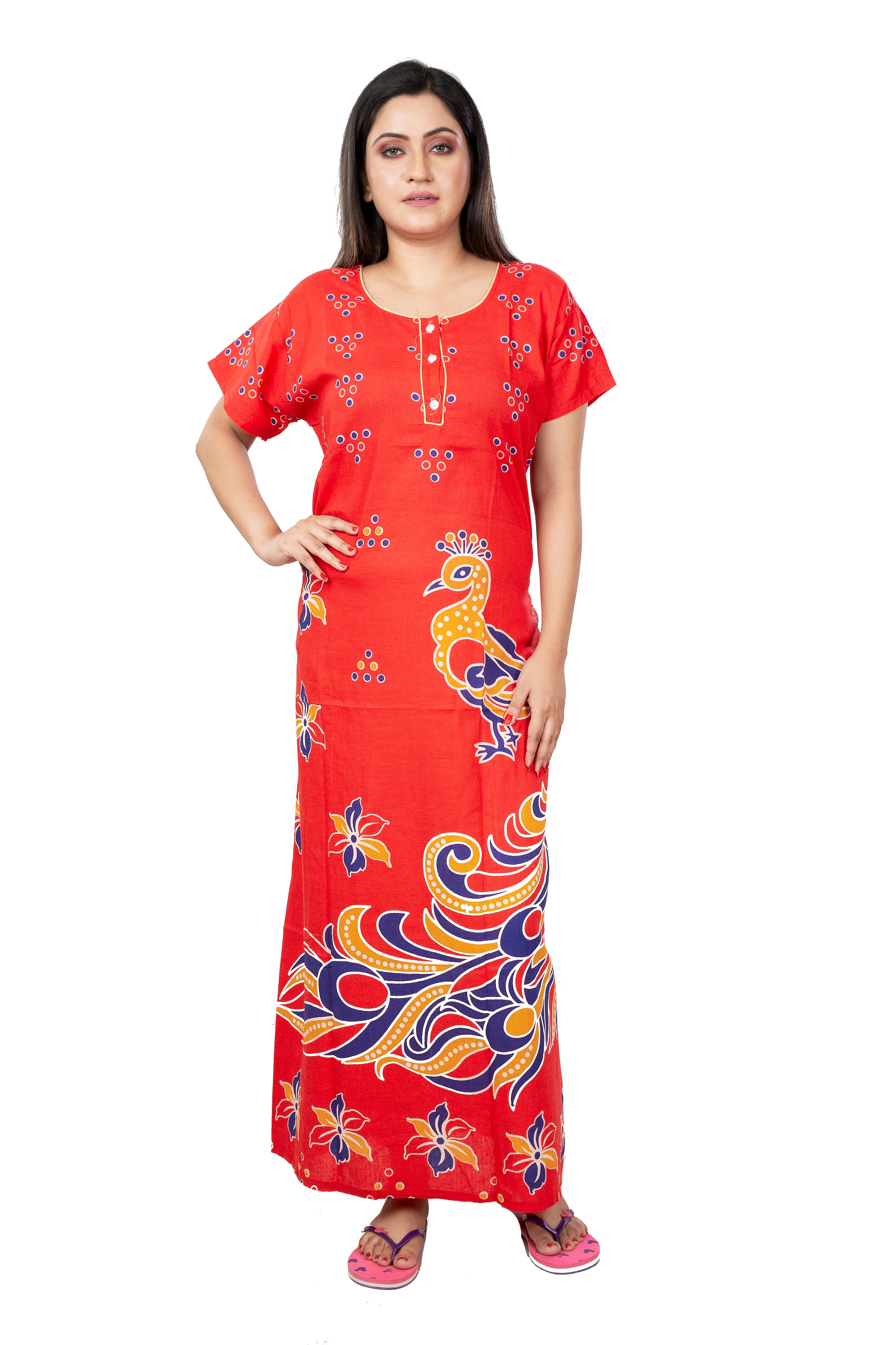 Red & Multi pure cotton floral nighty