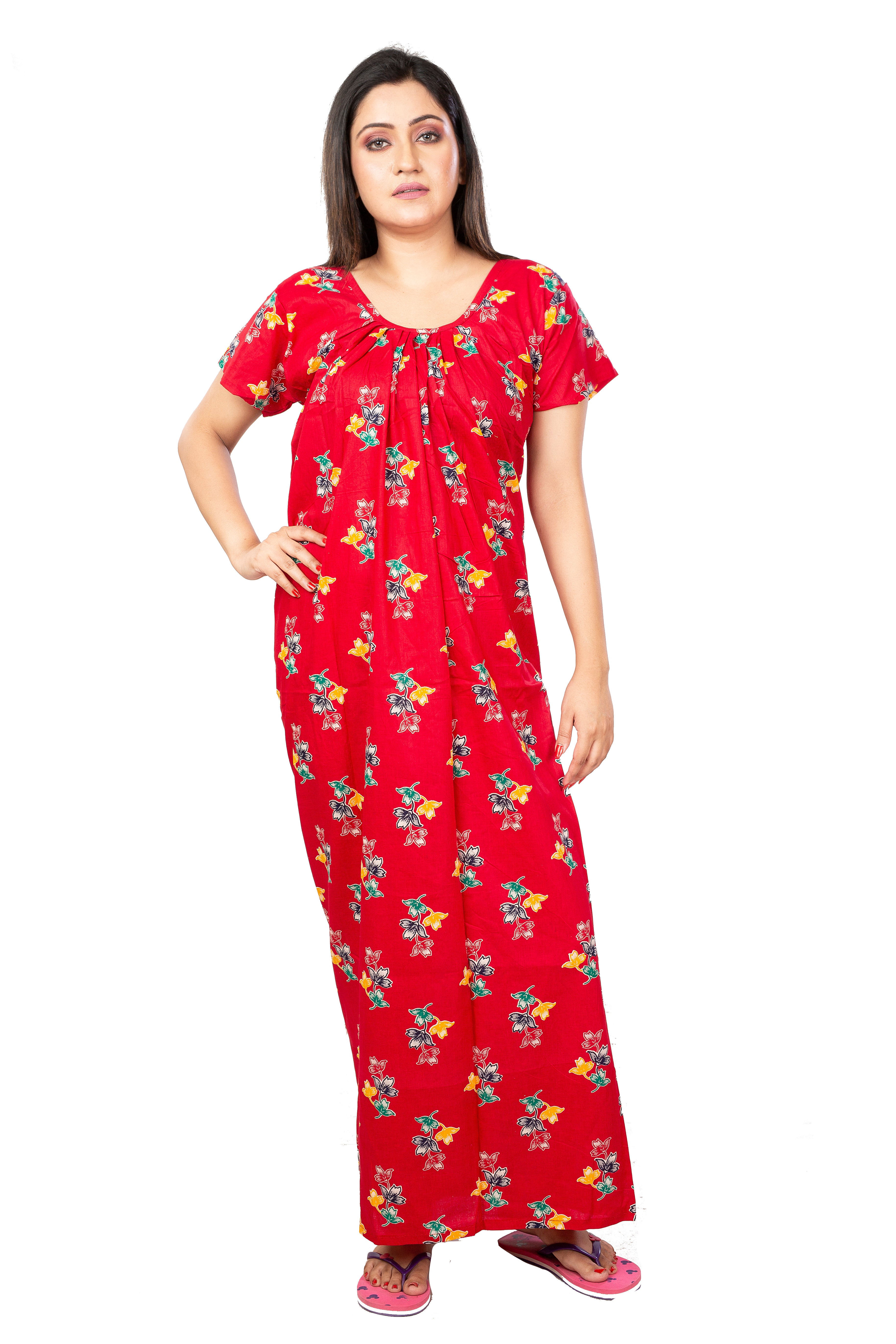 Floral Printed Pure Cotton Maxi-Length Nightdress