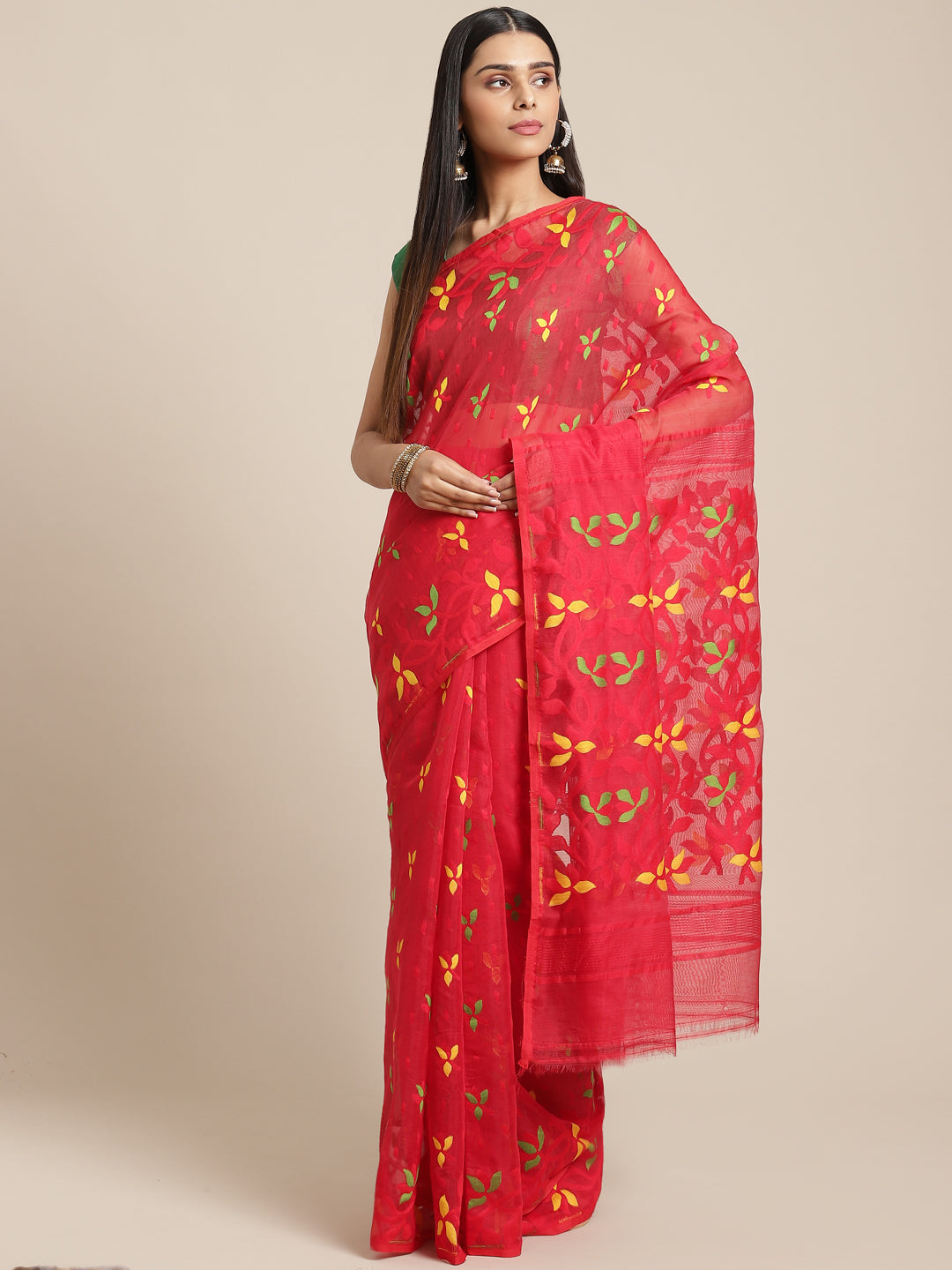 | Red & Red Cotton Jamdani Saree |