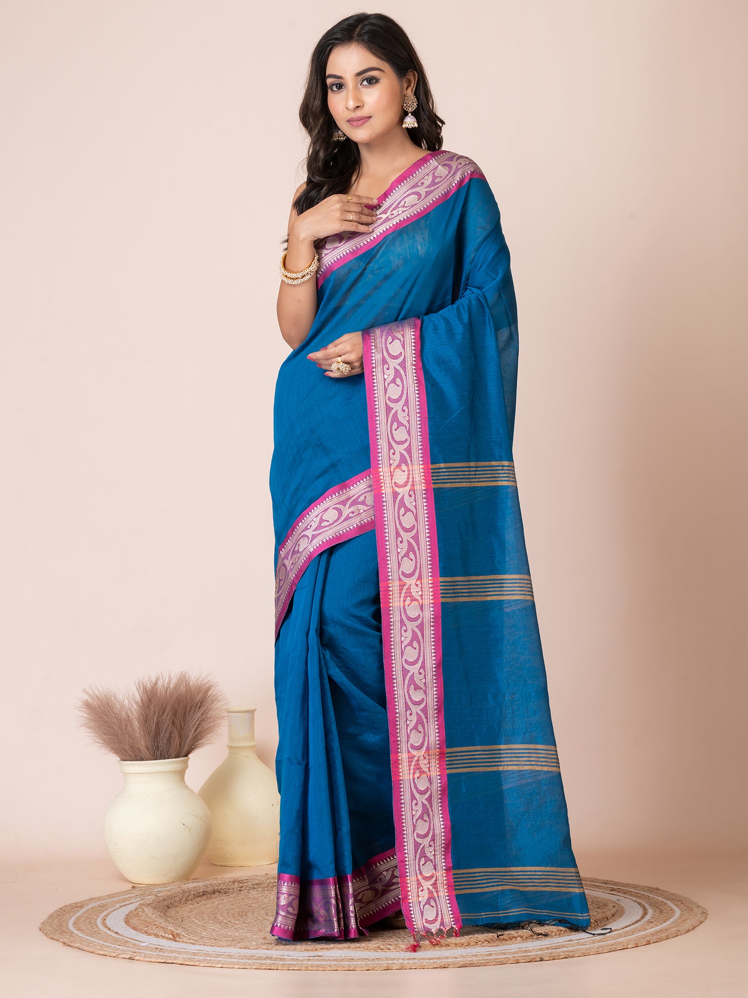 | Royal Blue & Magenta silk cotton solid handloom saree |