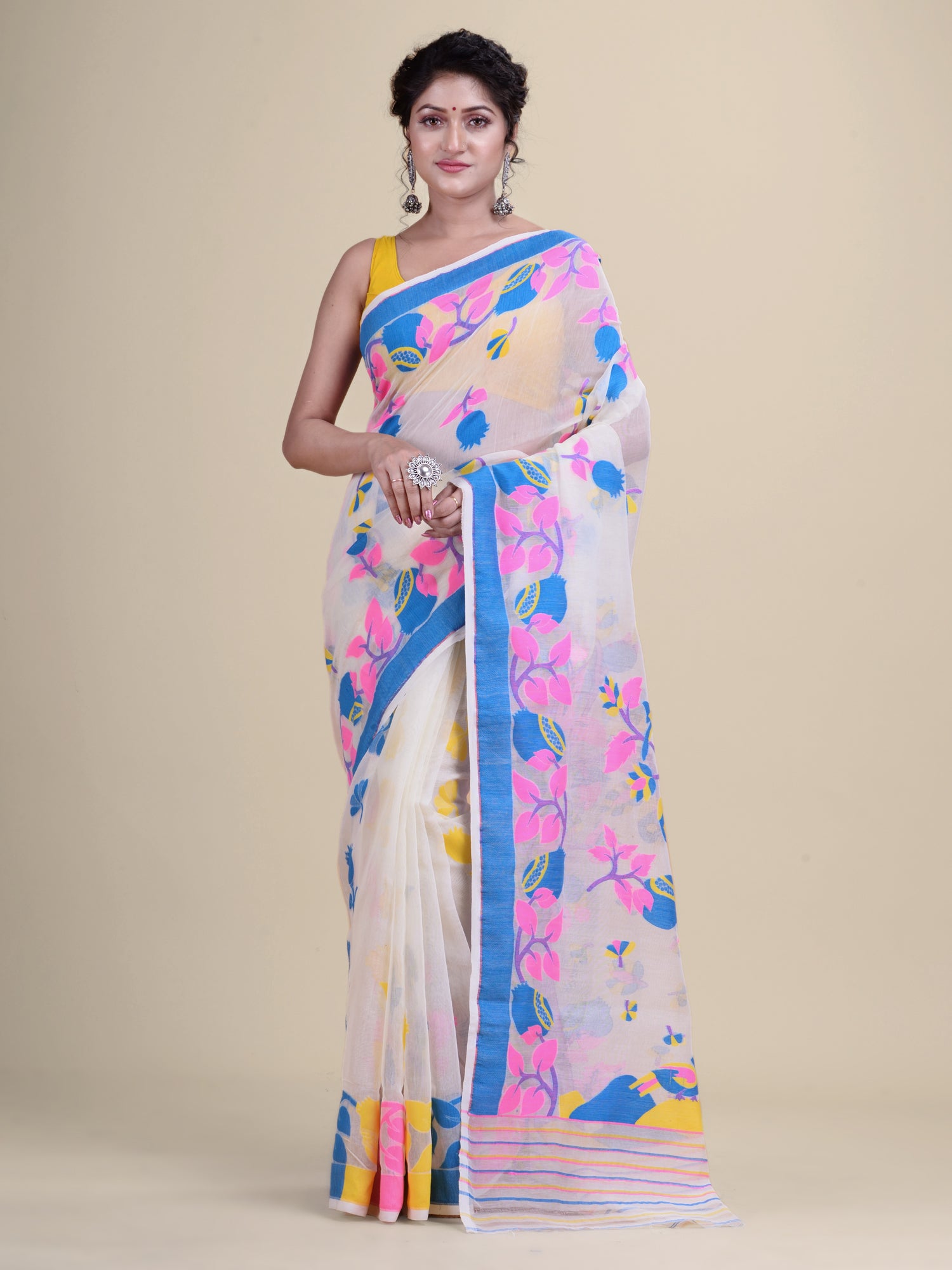 | White & Multi Cotton Jamdani Saree |