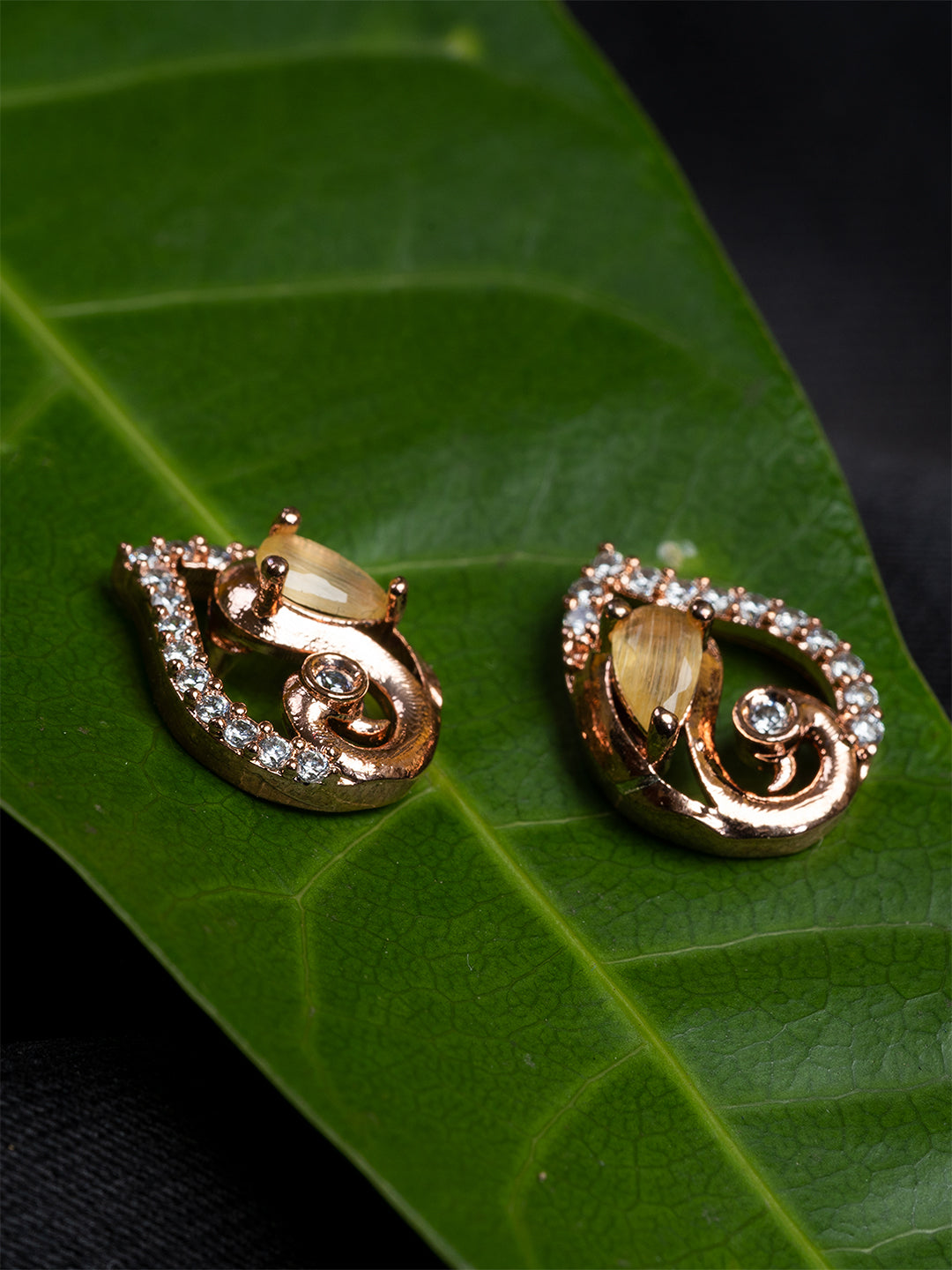 | Yellow & Gold Paisley shape Stud earrings |