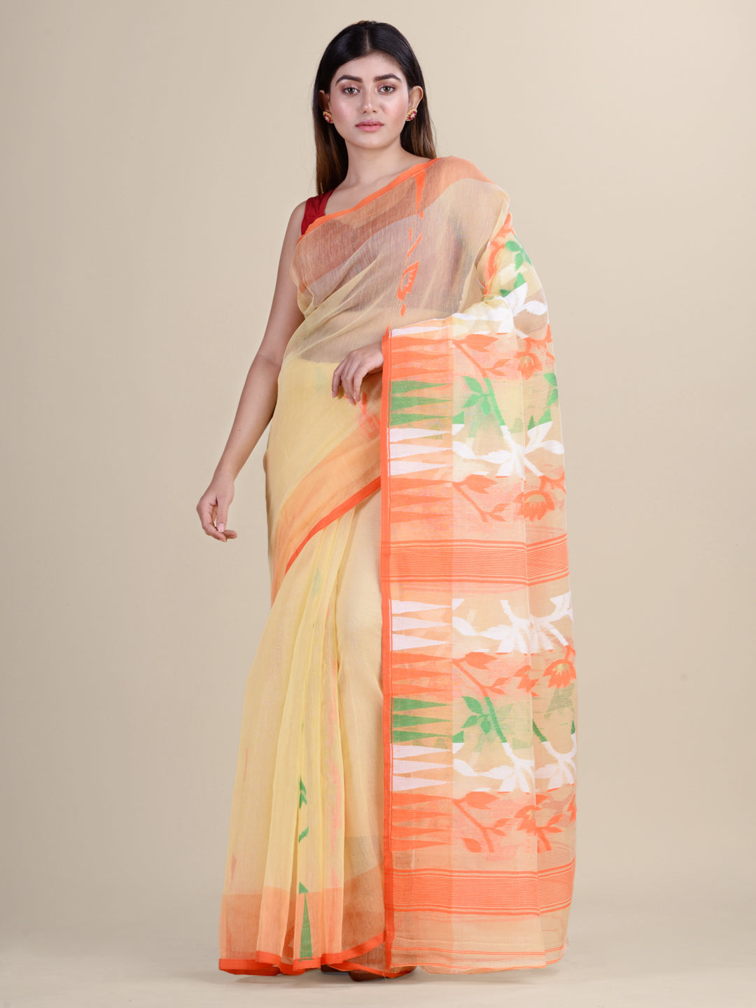 | Laa Calcutta Yellow & Multi Cotton Jamdani Saree |